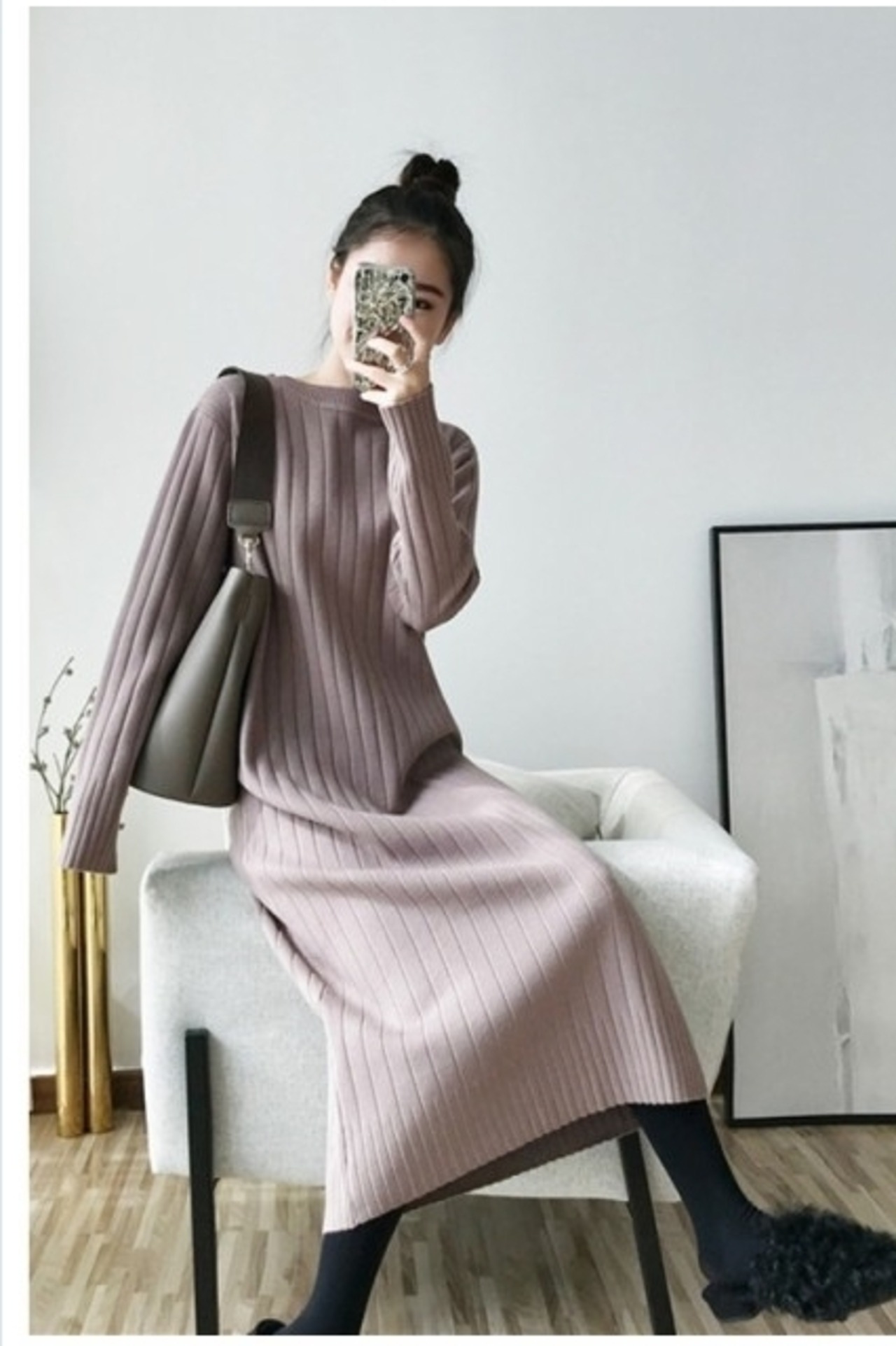 ボートネック ワンピース ニット ワンピース ボートネック マキシワンピース ニットワンピース あったか エレガント おしゃれ 女性らしい