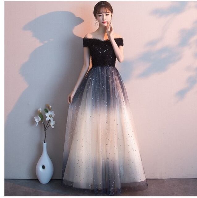 ボートネック ワンピース パーティードレス ひざ下丈 モミレ丈 チュール ボートネック 刺繍 花刺繍 ウエストリボン 大きいサイズ 大人可