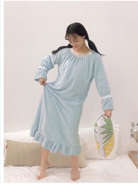 シャツワンピース ロング丈 長袖 ワンピース Tシャツ Aライン 裾 フリル あったか 保温性 スウェット プルオーバー 長袖 ロング丈