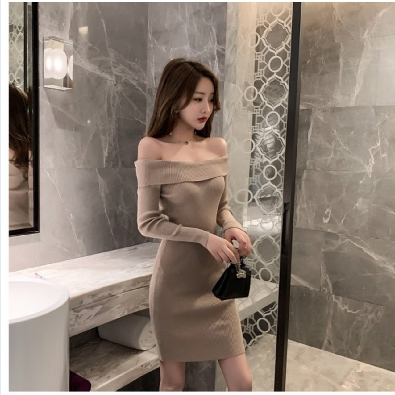 ボートネック ワンピース セクシー ミニワンピース ニットワンピ 長袖 タイトワンピース リブニット ボートネック レディース ストレッチ