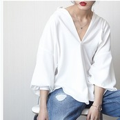 大きいサイズ コーディガン シャツ 深めVネック 襟抜き ゆったりシルエット オーバーサイズ 無地 ホワイト ブラック グレー シンプル カ