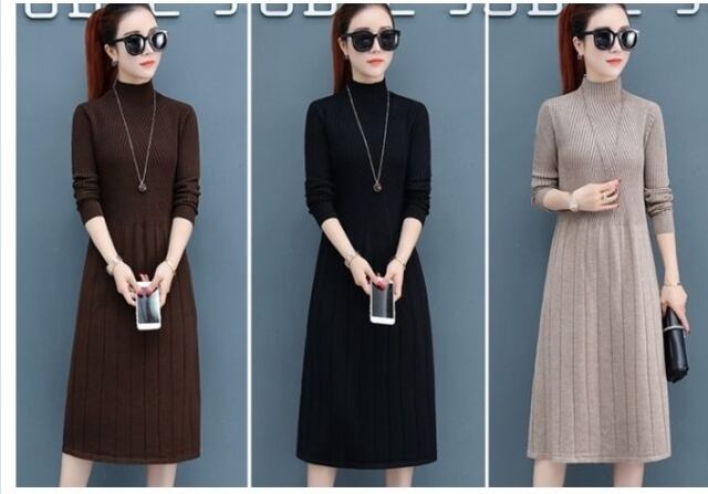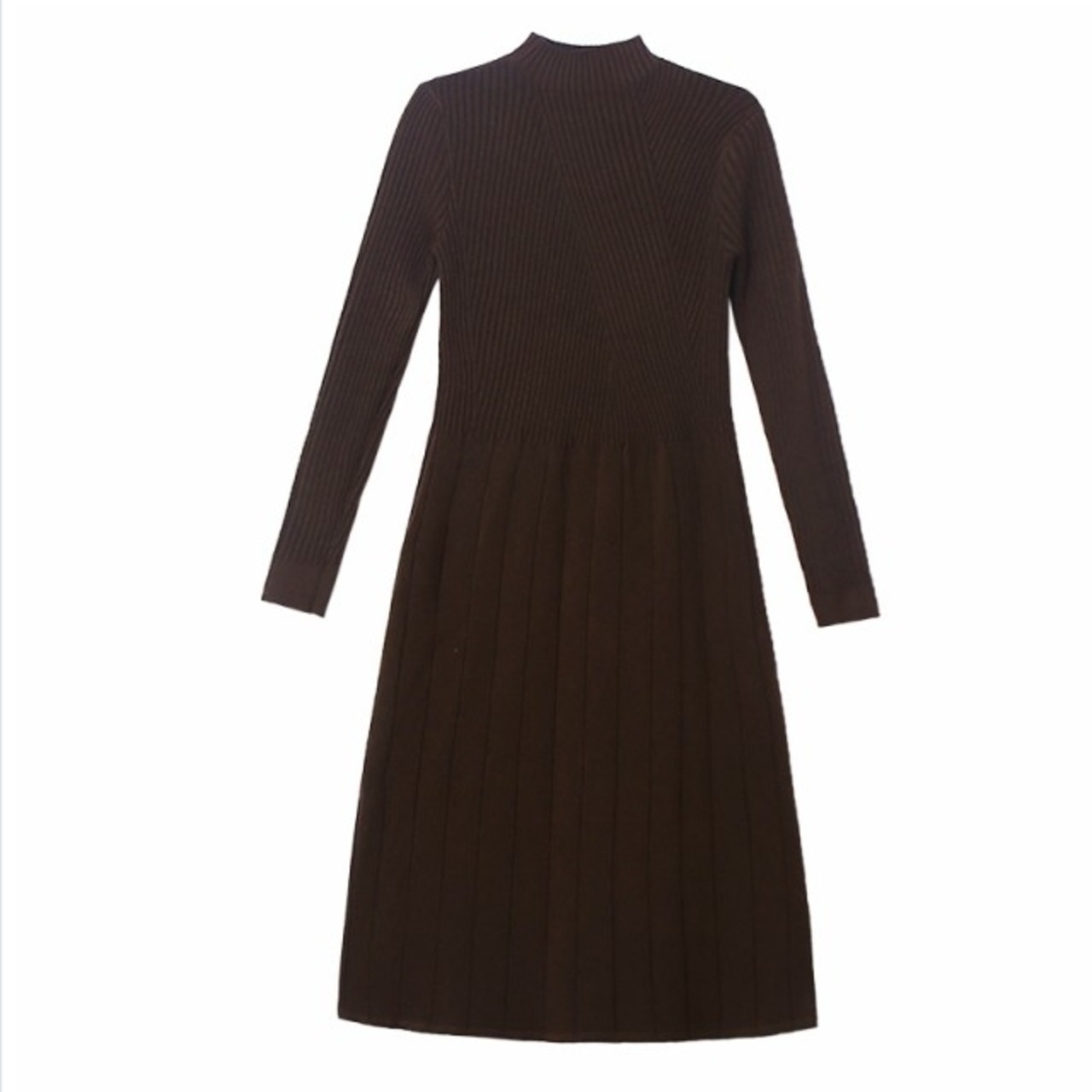 ボートネック ワンピース ワンピース 膝下丈 ワンピ ロング 長袖 ニット切り替え フリーツ ボートネック タートルネック カジュアル 暖か