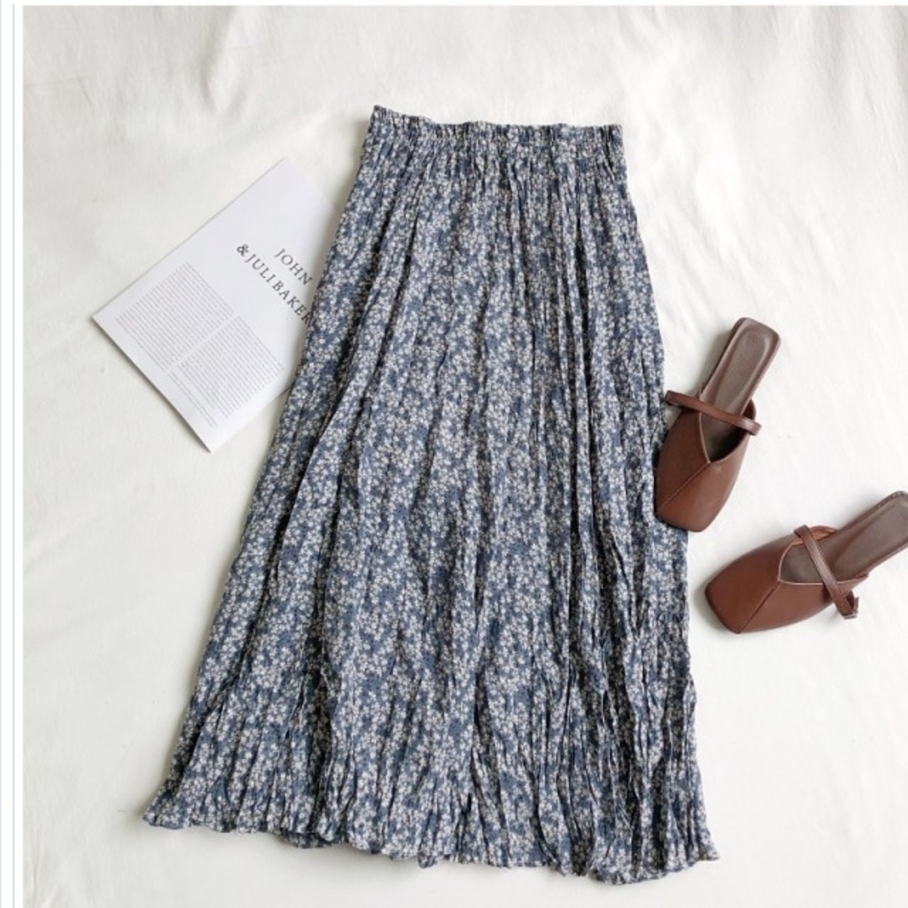 プリーツスカート ロング 花柄 春新作 大きいサイズ スカート デシン 小花柄 プリント 83丈 アコーディオン プリーツ ロング スカート