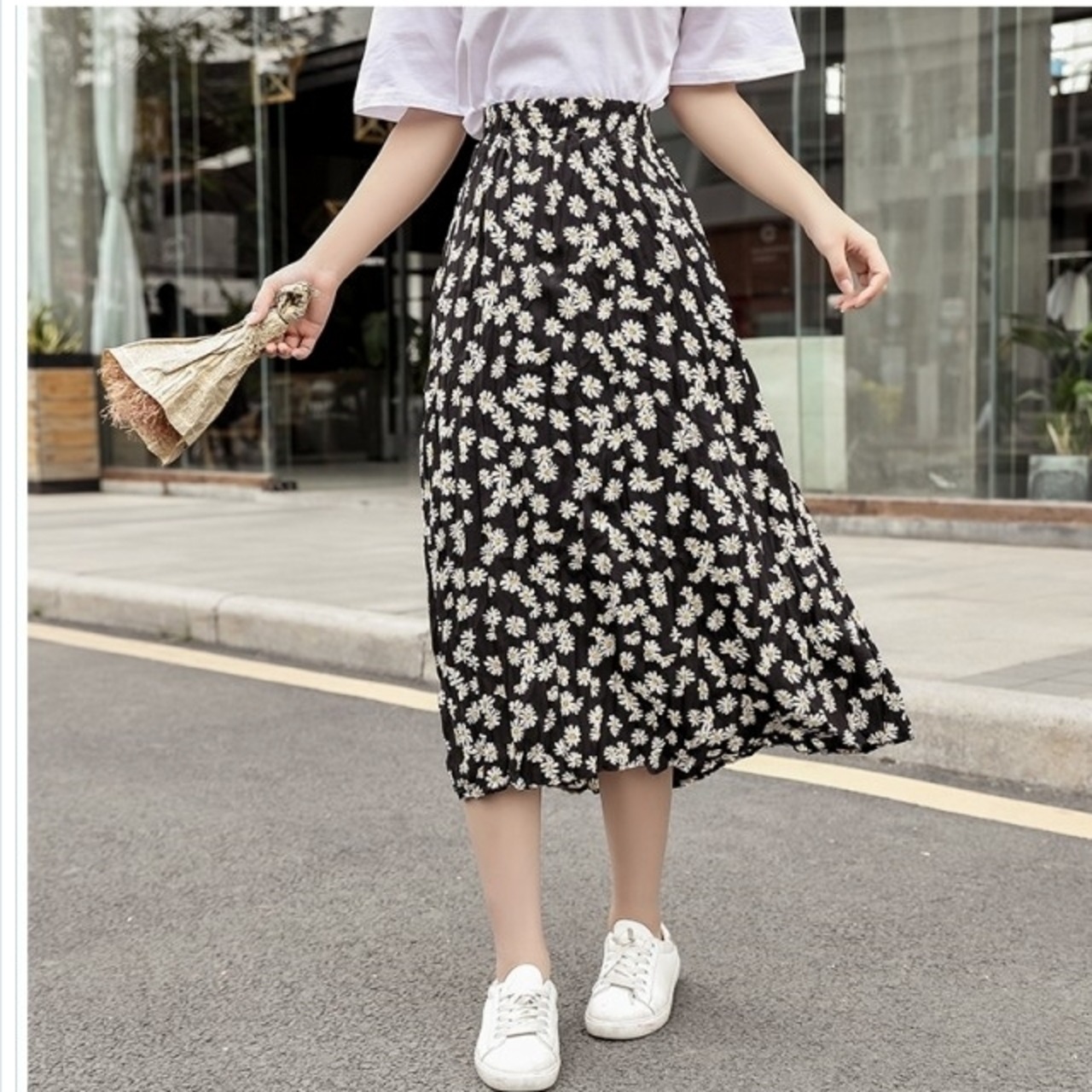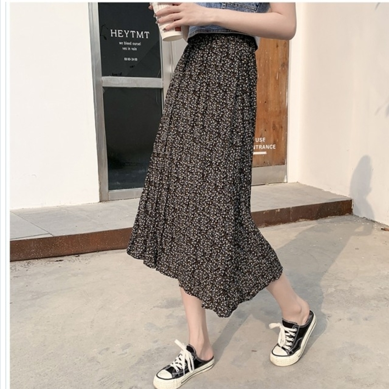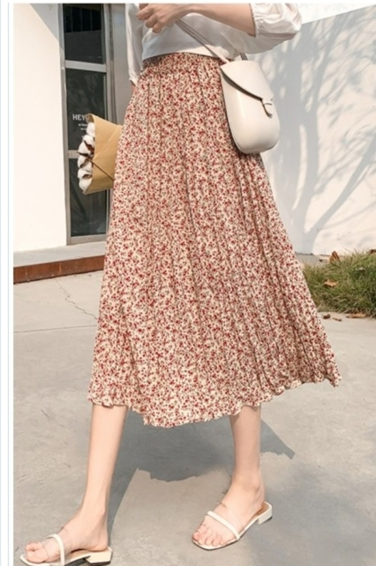 プリーツスカート ロング 花柄 春新作 大きいサイズ スカート シフォン 花柄プリント 86丈 消しプリーツスカート ロング丈