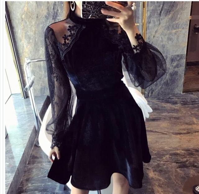 大人 ワンピース タイト 膝丈 ミニドレス パーティードレス ミニ ドレス ワンピース 膝丈 メッシュ 透け感 ベルベット スリム ウエストス