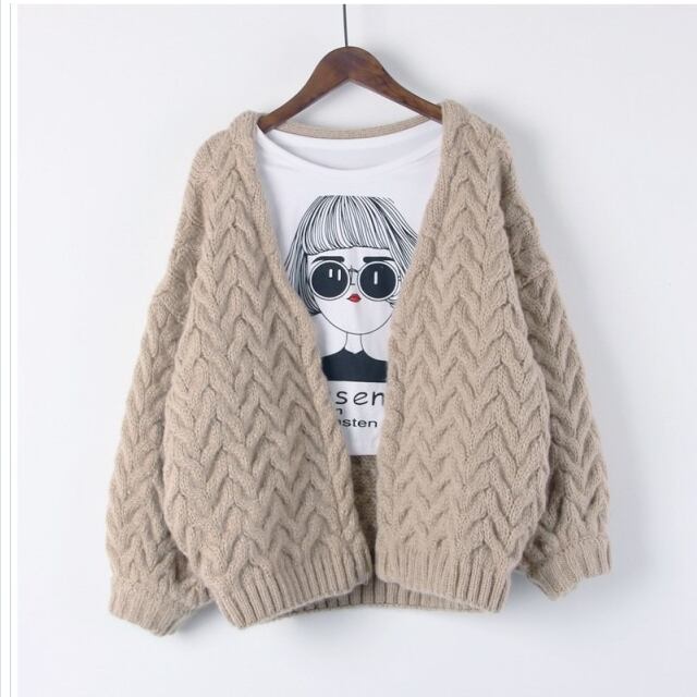 大きいサイズ コーディガン 厚手がかわいいアラン模様のニットカーディガン 全3色