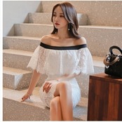 ボートネック ワンピース レースワンピ オフショルダー 大人 タイトワンピース 旅行 ママ 学生 成人式 通学 着痩せ 母親 フォーマル 通勤