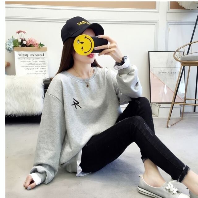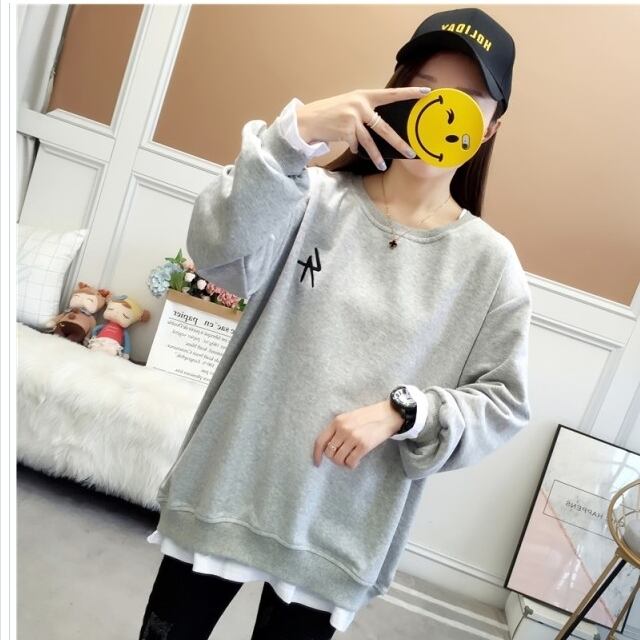 ルームウェア レディース 大きいサイズ 大きいサイズ ロング丈トレーナー ビック スエット クルーネック 重ね着風 セーター 体型カバー