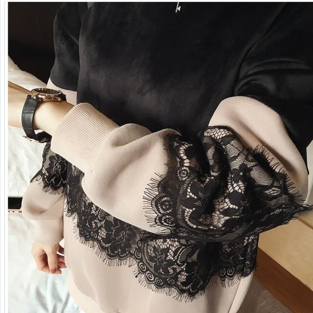ルームウェア レディース 大きいサイズ レディース スウェット レース ロング丈 プルオーバー ビックシルエット 秋 冬 長袖 トレーナー