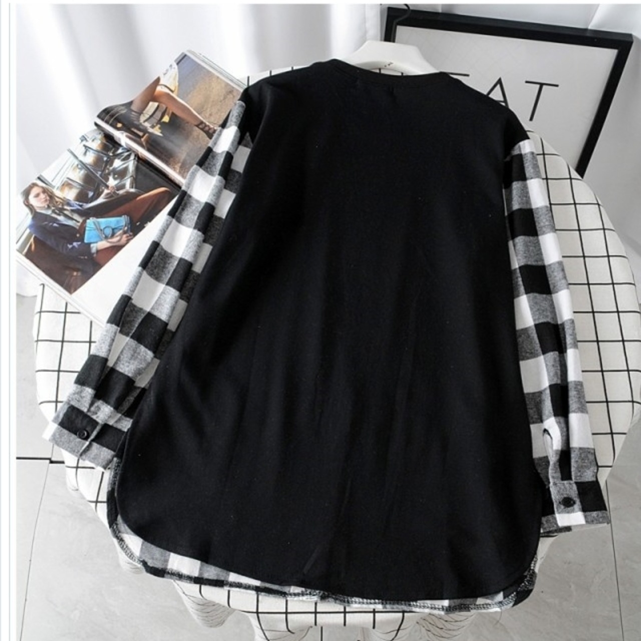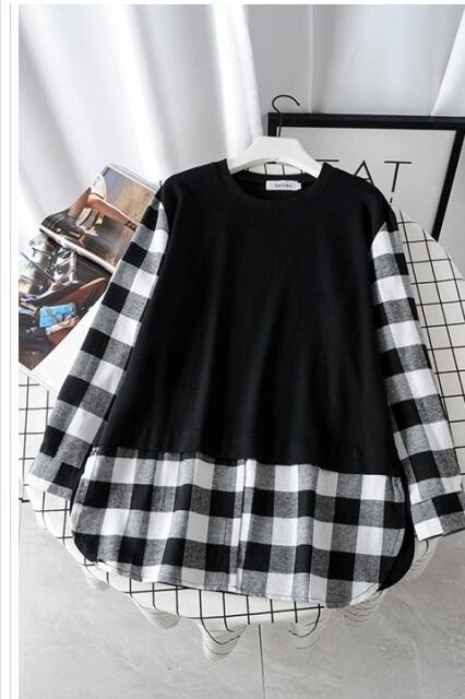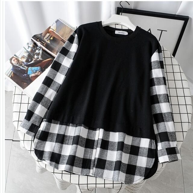 ルームウェア レディース 大きいサイズ 春 秋 トレーナー 重ね着風 チェック柄 シンプル カジュアル きれカジ 大きいサイズ ゆったり ト