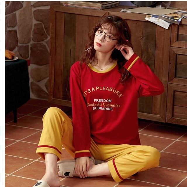 ルームウェア レディース 大きいサイズ パジャマ レディース 2点セット 花柄 バスローブ トップス+ズボン 切り替え 丸襟 プリント おん