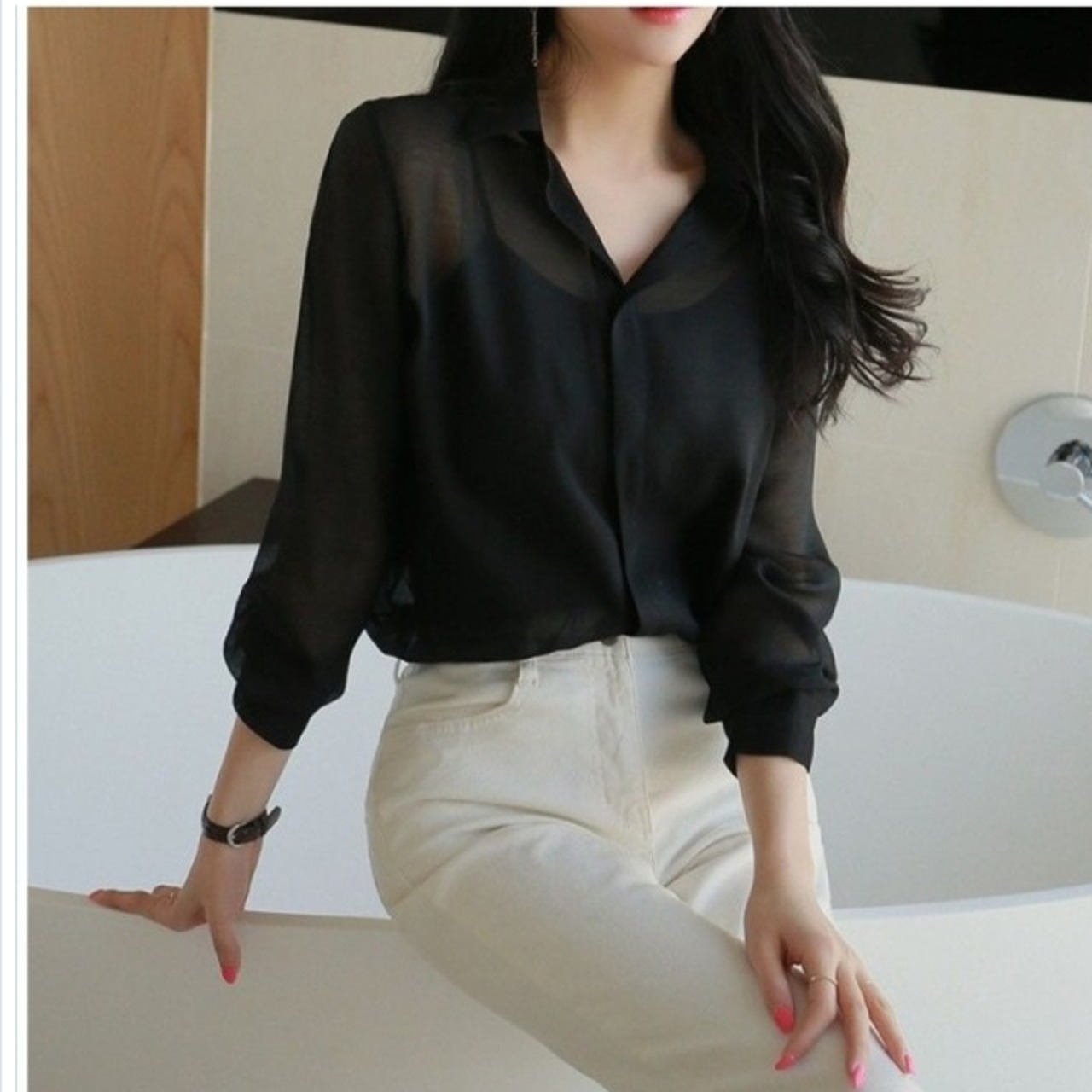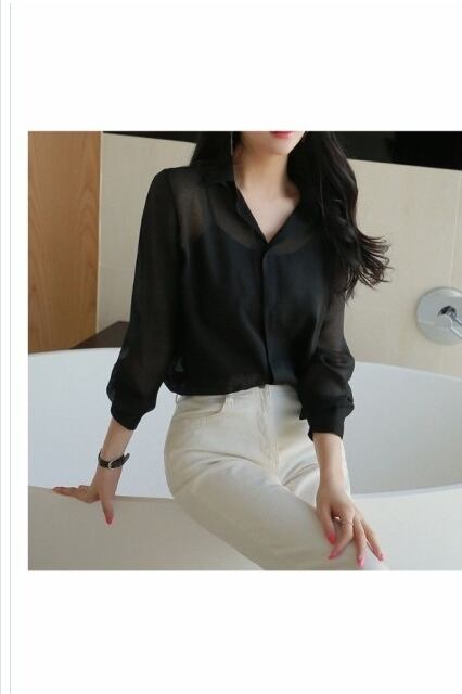 シースルー トップス 長袖 シースルーブラウス ブラックシャツ 大人女子 長袖 フォーマル 韓国ファッション
