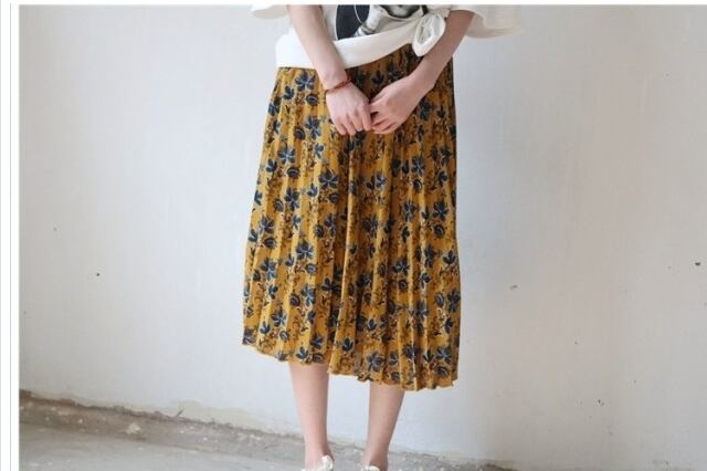 プリーツスカート ロング 花柄 スカート ロング丈 マキシ丈 大きいサイズ レディース 花柄 プリント プリーツ ロング テラコッタ系 黒系