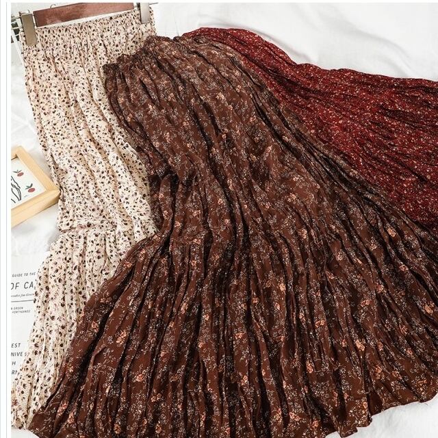 プリーツスカート ロング 花柄 プリーツロングスカート アウリー レディース ボトムス 黒 青 肌 ブラック ブルー ベージュ 秋物 秋冬 プ