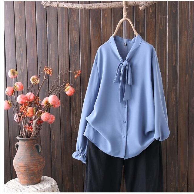 シアー トップス 春新作 ボウタイシフォンブラウス レディース トップス シャツ ブラウス ボウタイ シフォン ボウタイブラウス 長