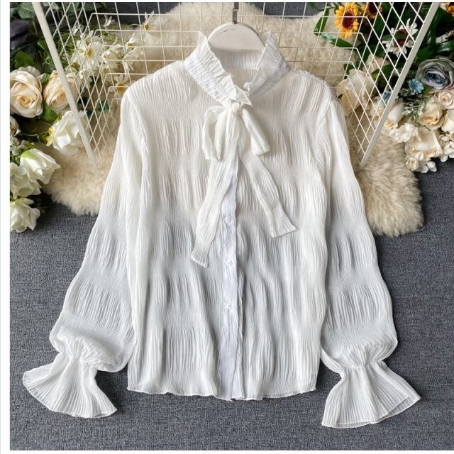 シアー トップス ブラウス テンセルブレンドシアーボウタイブラウス 全3色 レディース トップス ネクタイ 春 5