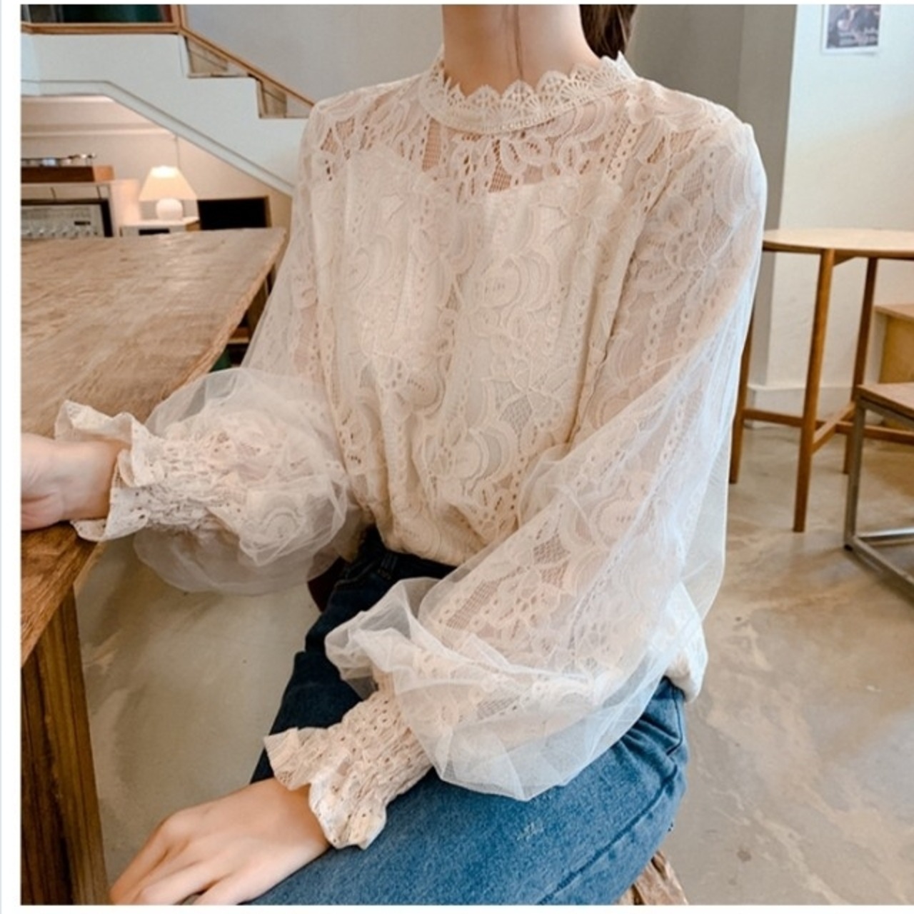 シアー トップス レース ブラウス トップス レディース シャツ ハイネック フリルネック ギャザー シースルー シアー フェミニン クラシ