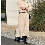 プリーツスカート ロング 花柄 ワンピース レディース 長袖ワンピース プリーツワンピース ロング丈 フリル ウエストベルト シック ラウ