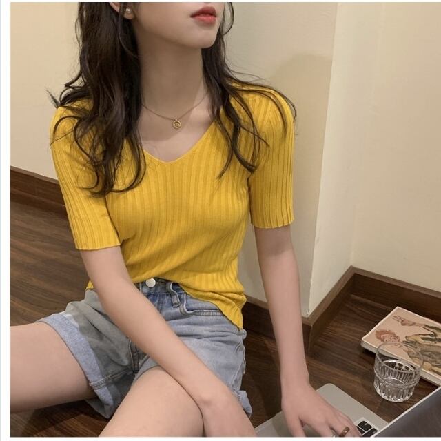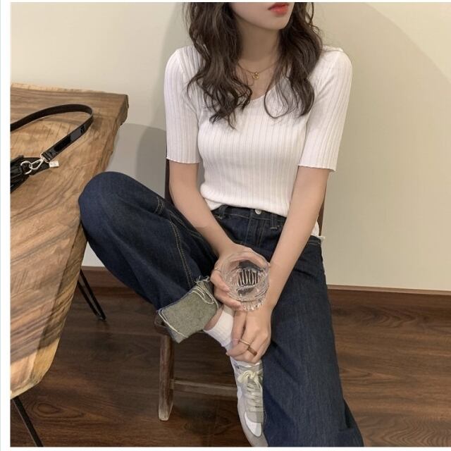 シアー トップス 通販 シアータートルハーフスリーブニット レディース トップス ニット リブニット 無地 カジュアル
