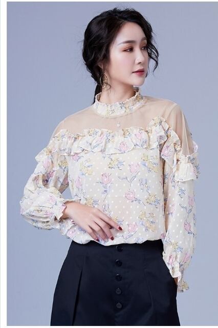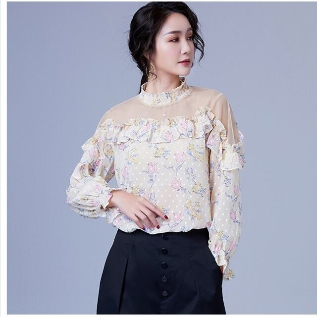 シアー トップス 選フリルレース切替えブラウス シフォン フリル ブラウス シアー