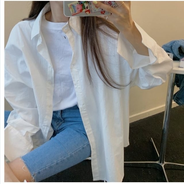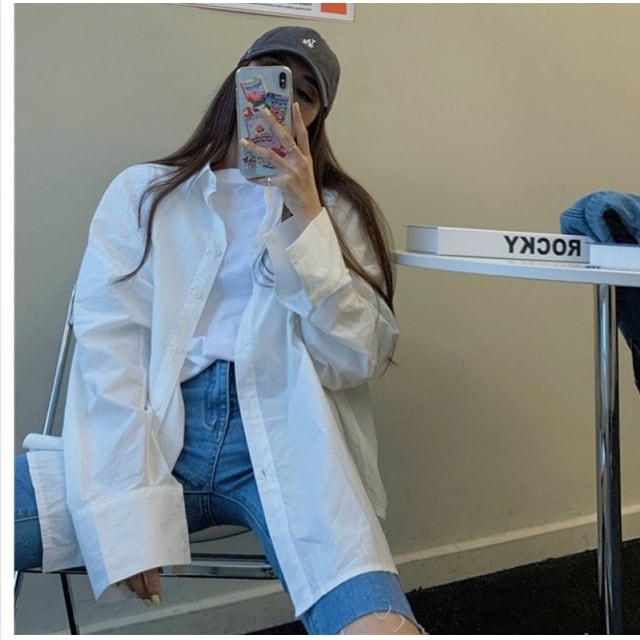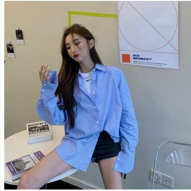 シアー トップス 6カラー M シャツ シンプル 無地 ベーシック 襟 ルーズシルエ