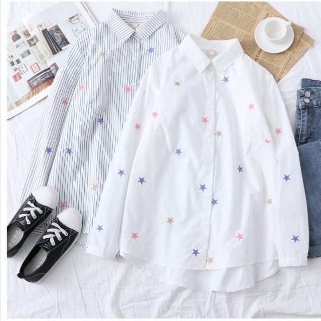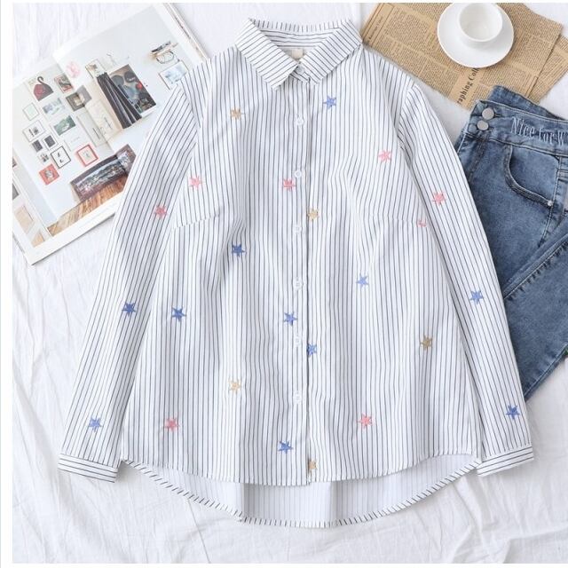 シアー トップス レディース秋冬 ガーリー カジュアル 薄手 シースルー 星柄 長袖 シャツ 前開きボタン 透け感 シアー スター 総柄 かわ