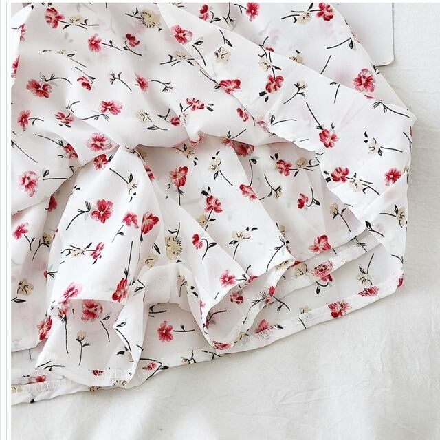 プリーツスカート ロング 花柄 韓国 長袖 ドレス ミディ丈 ワンピース スカート 花柄プリント 上品 結婚式 二次会 秋冬 秋冬新作 フォー