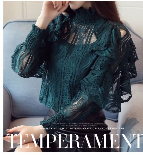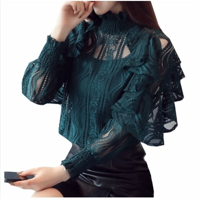 フリルブラウス 韓国 レース フリル襟 フリル袖 シャツ ブラウス シースルー ボリューム袖 長袖 レディース トップス 春服 秋服 韓国 フ