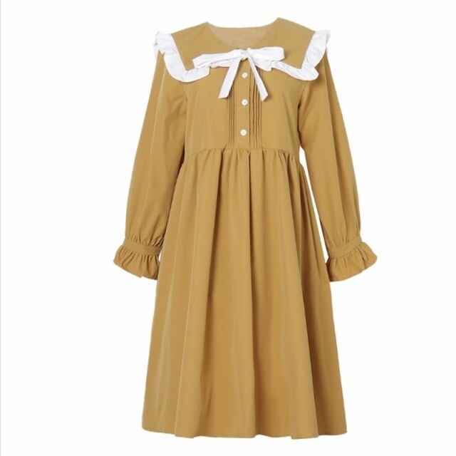 ロリータワンピース ワンピース 大人気海軍風 長袖ワンピース セーラー服 学園風マリン女子高生イエロー 可愛い 森ガールドレスロリータ