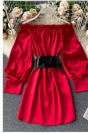 ロリータワンピース ゴスロリ ワンピース オフショル 袖コン ミディアム丈 シフォン レース フリル レッド 魔女 ロリータ