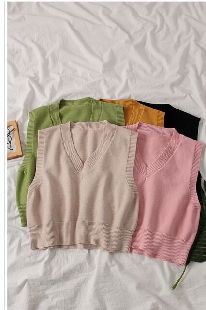 ゆるニット ニットベスト レディース ベスト 秋新作 ノースリーブ Vネック 無地ニット 切り替え プルオーバー ゆったり リブニット ゆる