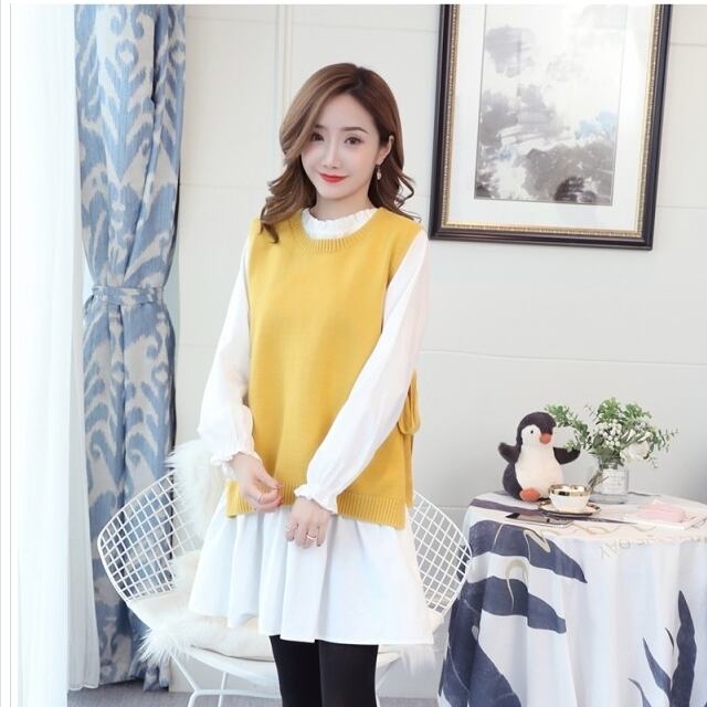ゆるニット ニットベスト レディース ベスト ゆったり ゆるニット ニットトップス スリット入り ノースリーブ ラウンドネック リブニット