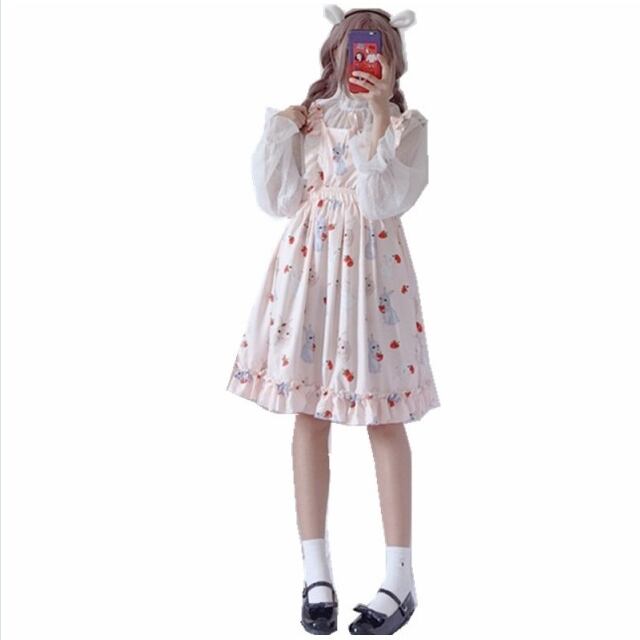 ロリータワンピース 苺 兎 イチゴ ワンピース 上下セット 2点セット ロリータ ゴスロリ、ゴシック、コスプレ メイド