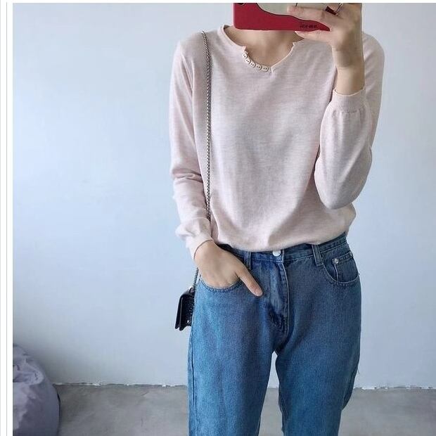 ゆるニット ボーダー ニット レディース 秋冬 ハイゲージ Vネック ニット トップス 長袖 ゆるニット 無地