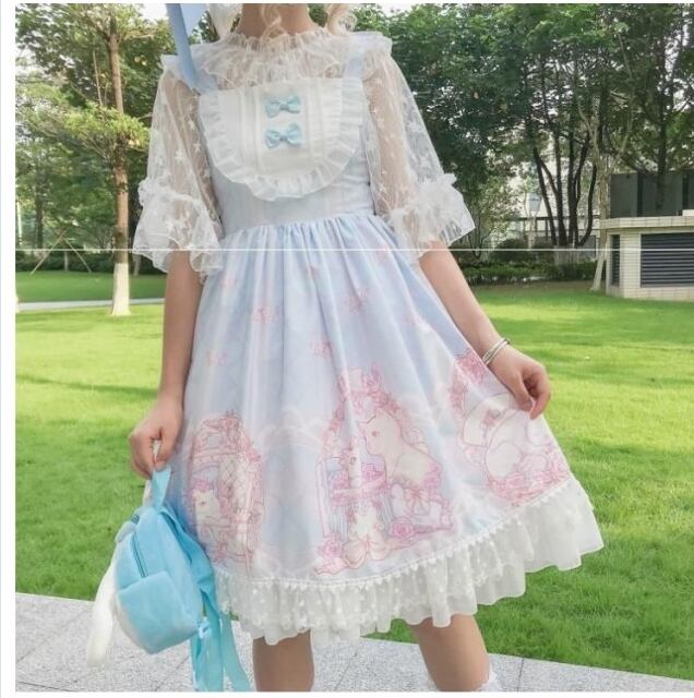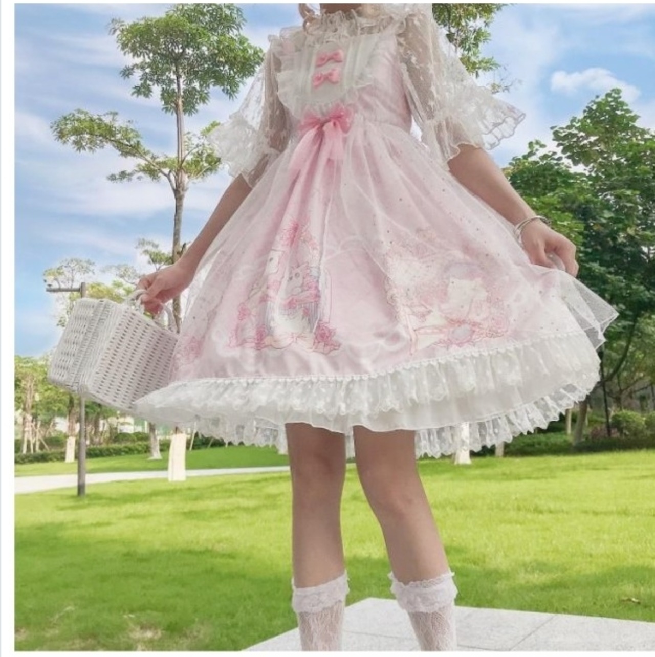 ロリータワンピース キャミワンピース ワンピース ジャンパースカート リボン スウィート レース シフォン ストラップ フリル ガーリー