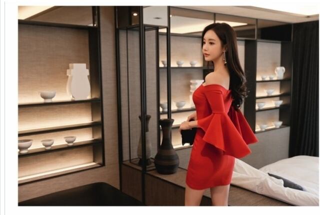 大人 ワンピース タイト 膝丈 レディース ワンピース ベルスリーブ 肩だし ひざ丈 ハイウエスト タイト スリット バイカラー デート お出