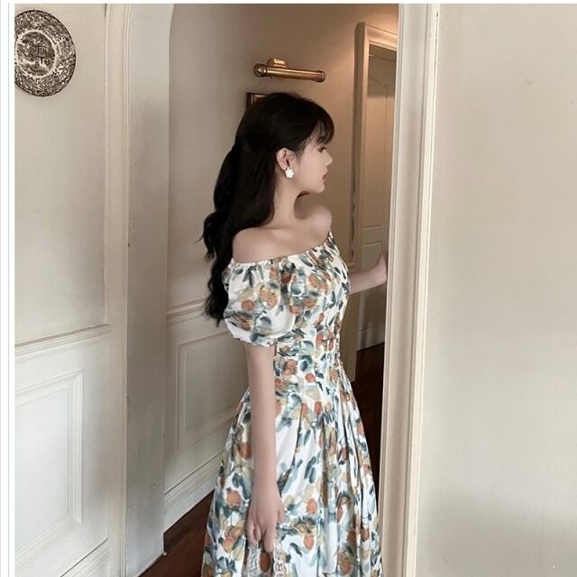 大人 ワンピース タイト 膝丈 レディース ワンピース ノースリーブ オフショルダー ひざ丈 花柄 フリル タイト スリム デート お出かけ
