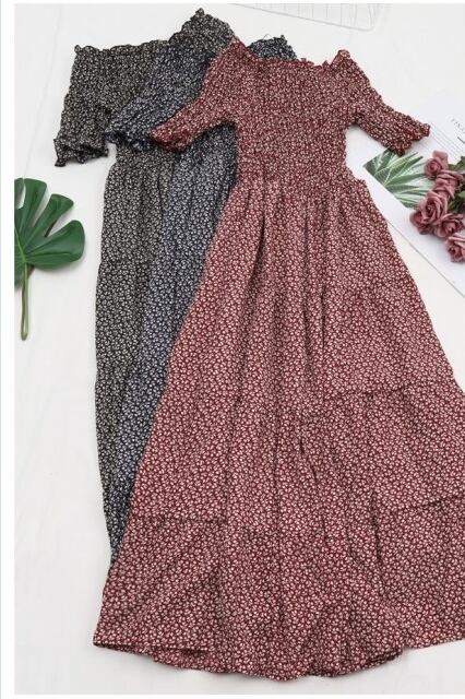 花柄 ロングワンピース 長袖 ロングワンピース レディース ワンピース シフォン ロング丈ワンピース 小花柄 長袖ワンピース スクエアネッ