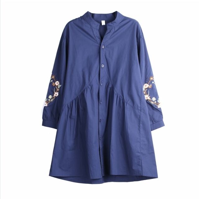 花柄 ロングワンピース 長袖 シャツワンピース デニム レディース ロングワンピース 長袖 秋ワンピース ゆったり 体型カバー デニムシャ