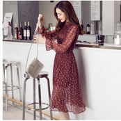 花柄 ロングワンピース 長袖 全6色 森ガール ワンピース シフォン 長袖 花柄ワンピース ロング 小花柄 文芸風 ウエストゴム