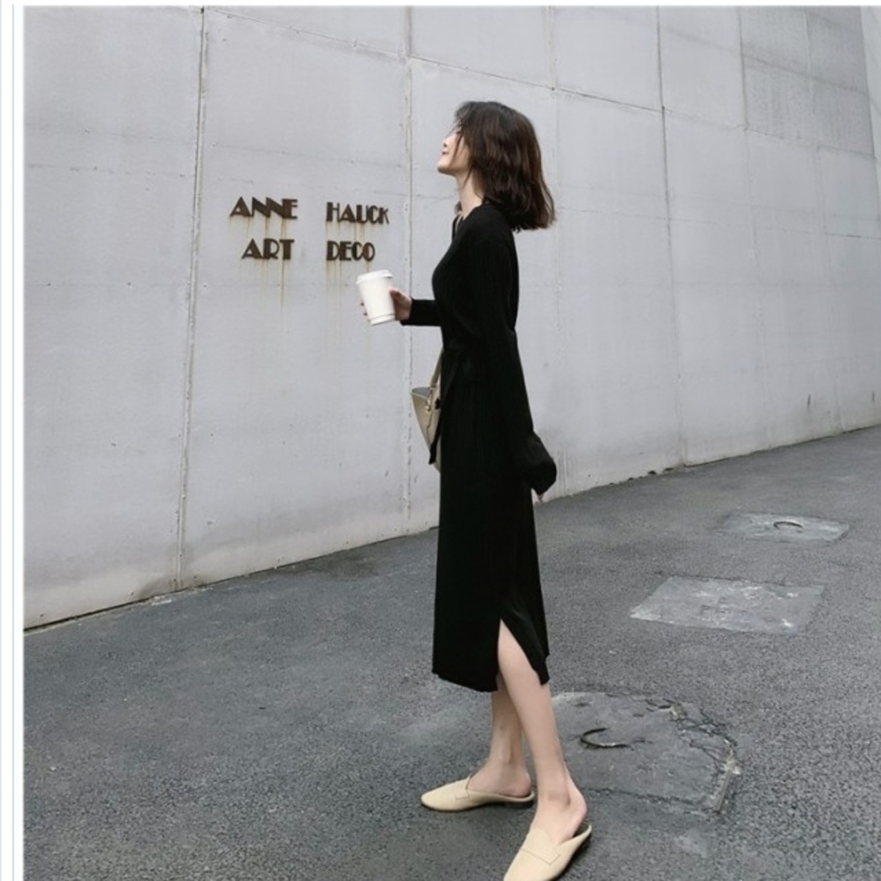 大人 ワンピース タイト 膝丈 韓国 ファッション レディース ワンピース 秋 冬 カジュアル ウエストマーク リブニットワンピ セミタイト