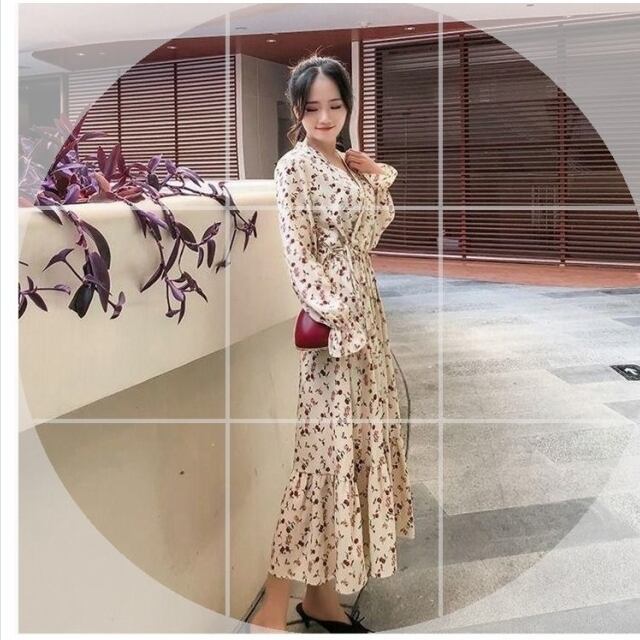花柄 ロングワンピース 長袖 花柄ワンピース レディース カシュクール Vネック ロング ガーリー シフォン ゆるふわ 可愛い フリル ハイウ