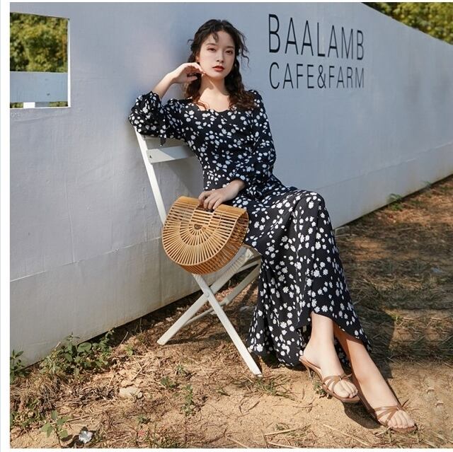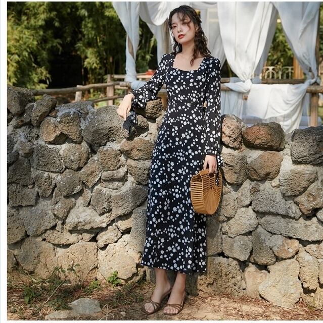花柄 ロングワンピース 長袖 ワンピース レディース 花柄 フリル ロングワンピース デイジー フラワー 長袖