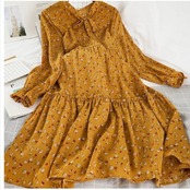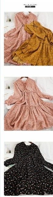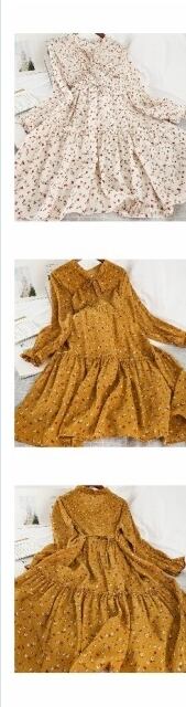 花柄 ロングワンピース 長袖 ワンピース ドレス レディースファション シフォン 花柄 リボンネック 長袖 ロング丈 ハイウエスト 新作 S M
