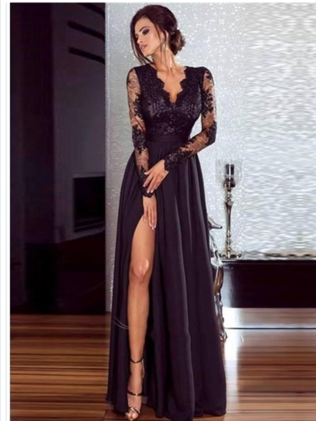 大人 ワンピース タイト 膝丈 ワンピース フレア 長袖 ミニ 膝上 膝丈 フラワーレース 透け感 無地 ブラック フェミニン エレガント シッ