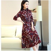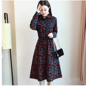 花柄 ロングワンピース 長袖 韓国 長袖 ドレス ミディ丈 ワンピース スカート 花柄プリント 上品 結婚式 二次会 秋冬 秋冬新作 フォーマ