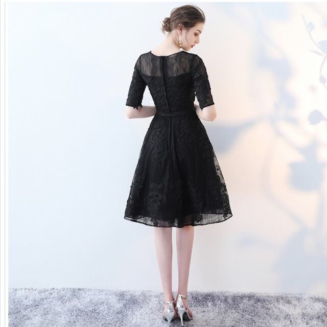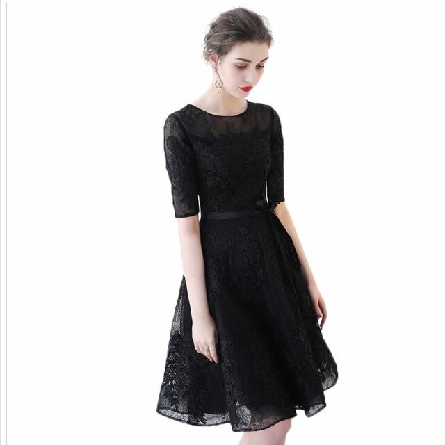 大人 ワンピース タイト 膝丈 韓国 パーティードレス ひざ丈 ウエストリボン Aライン レース ワンピース ドレス 秋冬 結婚式 二次会