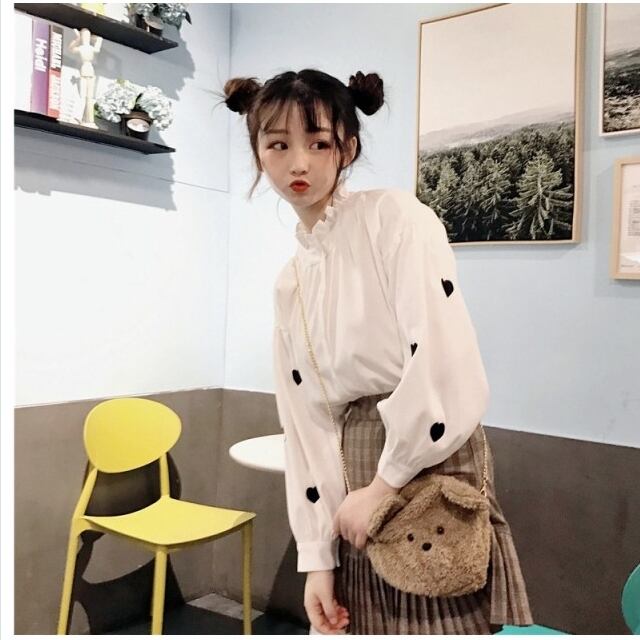 花柄 ロングワンピース 長袖 ブラウス レディース トップス 長袖ブラウス ハート フリル襟 ランタンスリーブ ドロップショルダー 盛り袖