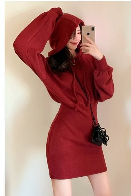 大人可愛い チュニック ワンピース ニット ワンピース パーカー 帽子 フード チュニック丈 秋物 冬物 最新 レディース ファッション 人気