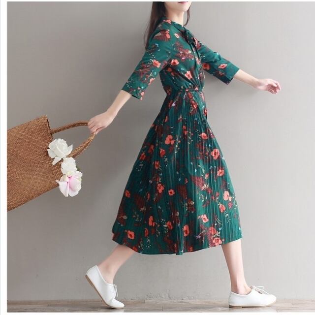 花柄 ロングワンピース 長袖 シフォン ワンピース 花柄 長袖 ロング丈 女性用 シフォンワンピース プリーツスカート 春夏秋